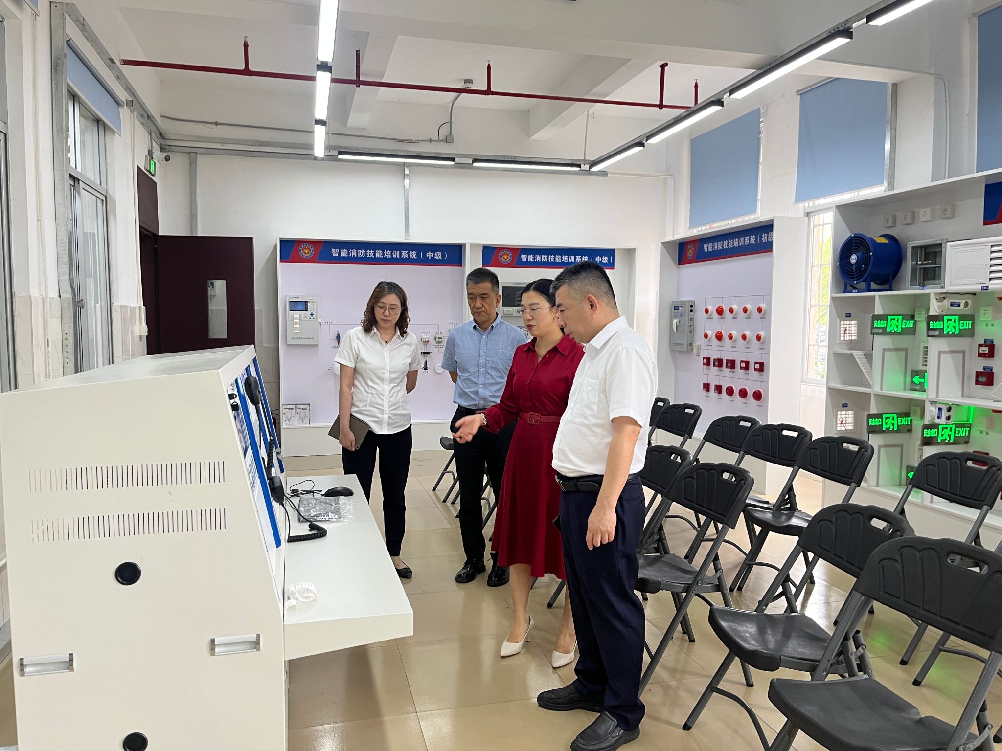 广州应急产业园一行先后参观了基地的消防安全管理员培训教室、消防设施操作模拟实训中心及标准化考核场地,详细了解培训课程设置、师资力量配备、实操设备运行及考核认证流程。