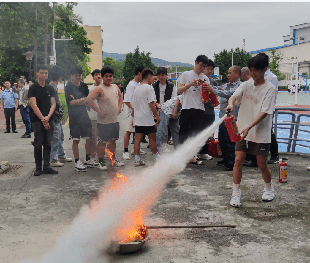 演练过程中,各小组各司其职,宿舍火情被及时扑灭,没有发生师生踩踏事故。演练结束后,工作人员还现场教学,指导学生正确使用灭火筒。