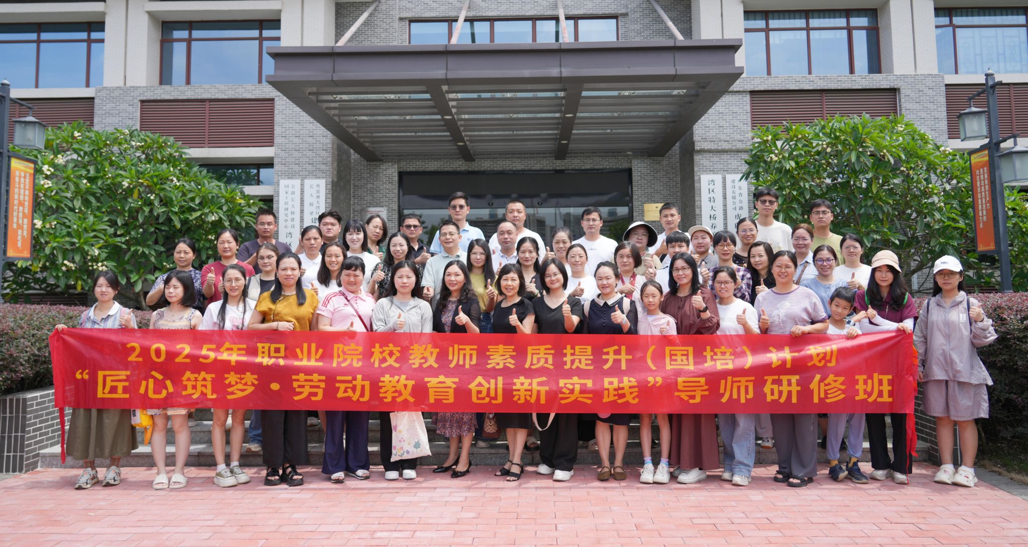 7月15日,由学院承办的2025年劳动教育创新实践导师研修班(国培)项目的学员来到位于东莞的湾区特大桥梁养护技术中心。建设公司党群工作部副部长、工会吴建城副主席,技术中心党支部书记、工会华允安主席接待了来自全省18个地市的50名中职学校劳动教育领域的专兼职老师。